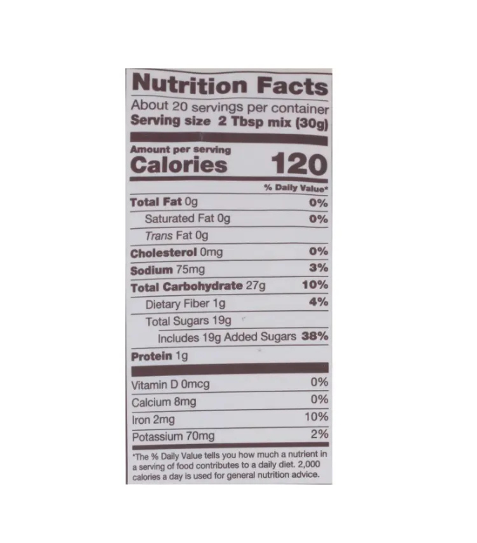 Protein: 1g/ 2TBSP mix (30g) serving