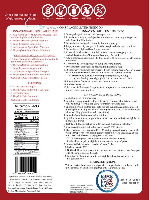 Mom’s Place Gluten/Dairy-Free Cinnamon Swirl Bun or Cinnamon Roll Mix-15.2oz