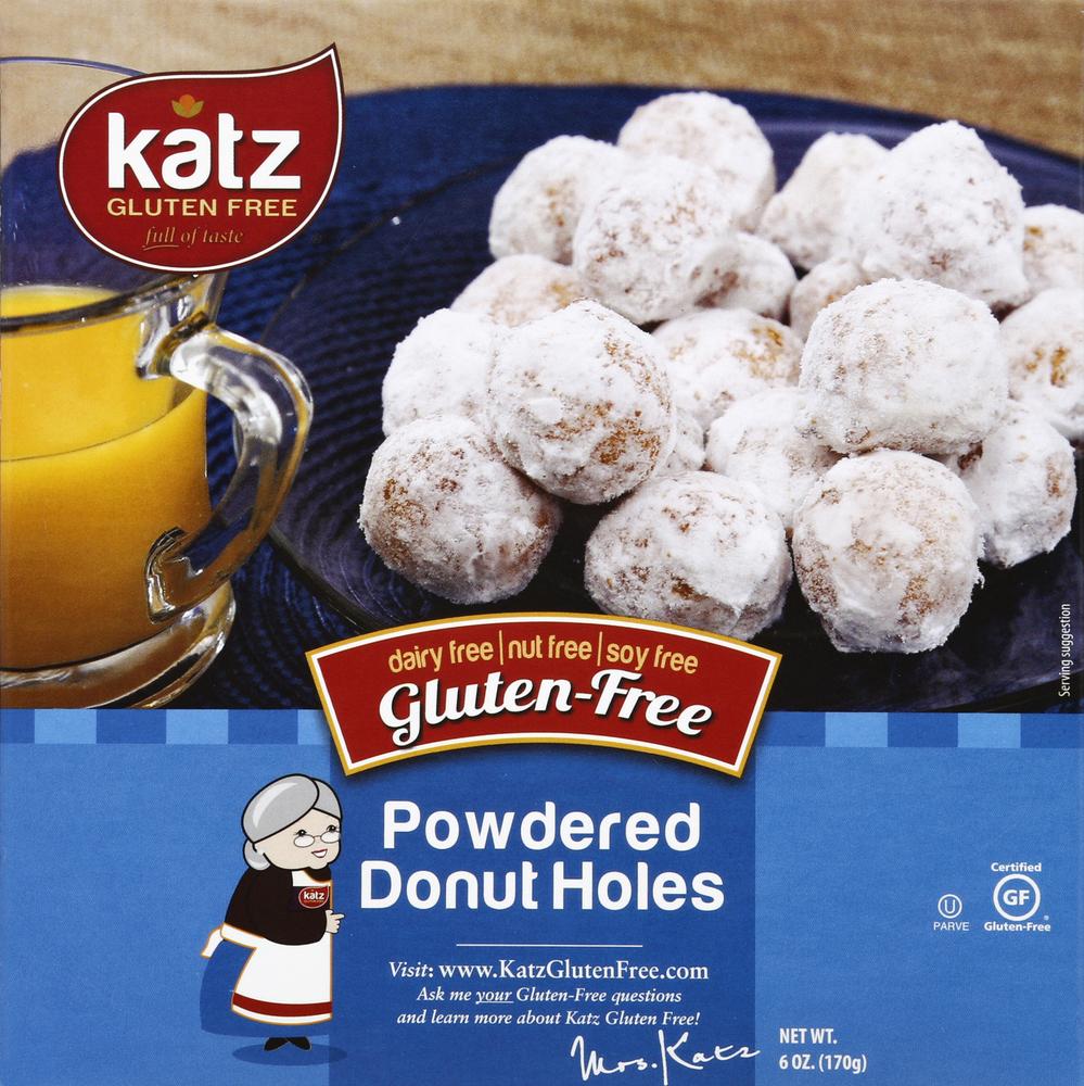 Everyone loves powdered donuts.  That’s why we made these. Bite-sized versions of our best-selling powdered donut holes, made with our special mix of gluten-free flours. Katz Powdered Donut Holes are gluten-free and full of taste. These certified kosher-parve donut holes come packaged in one 6 oz. box and have 0 g of saturated fat and trans fat. Each serving has just 15 mg of cholesterol, 150 mg of sodium, and 6 g of sugars.
