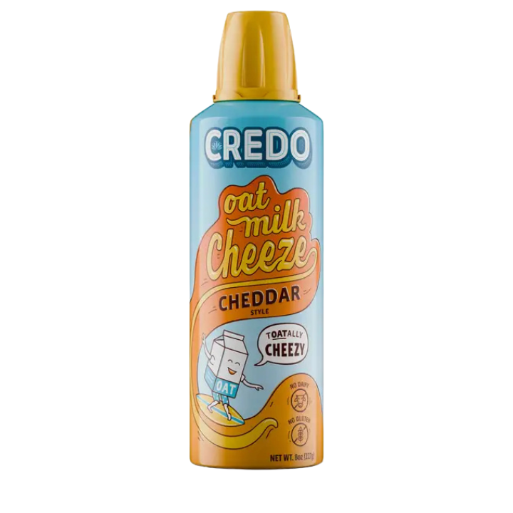 Credo’s Oat Milk Cheeze – Dairy-Free, Oat Milk-Based, and Free from Artificial Preservatives. Take a trip back to a simpler time with Credo’s Oat Milk Cheeze, a deliciously creamy, dairy-free cheeze made for today’s modern consumer. Using oat milk, this plant-based cheeze is free from artificial preservatives, seed oils, and GMOs, making it the healthier choice for those looking to enjoy a classic flavor without the compromise. Perfect for spraying on your favorite crackers, hot dogs, burgers, or baked potatoes, this dairy-free cheeze is as versatile as it is delicious. Whether you’re snacking or adding a creamy layer to your meal, Credo’s Oat Milk Cheeze is the perfect way to enjoy the cheesy taste you love, without the dairy.