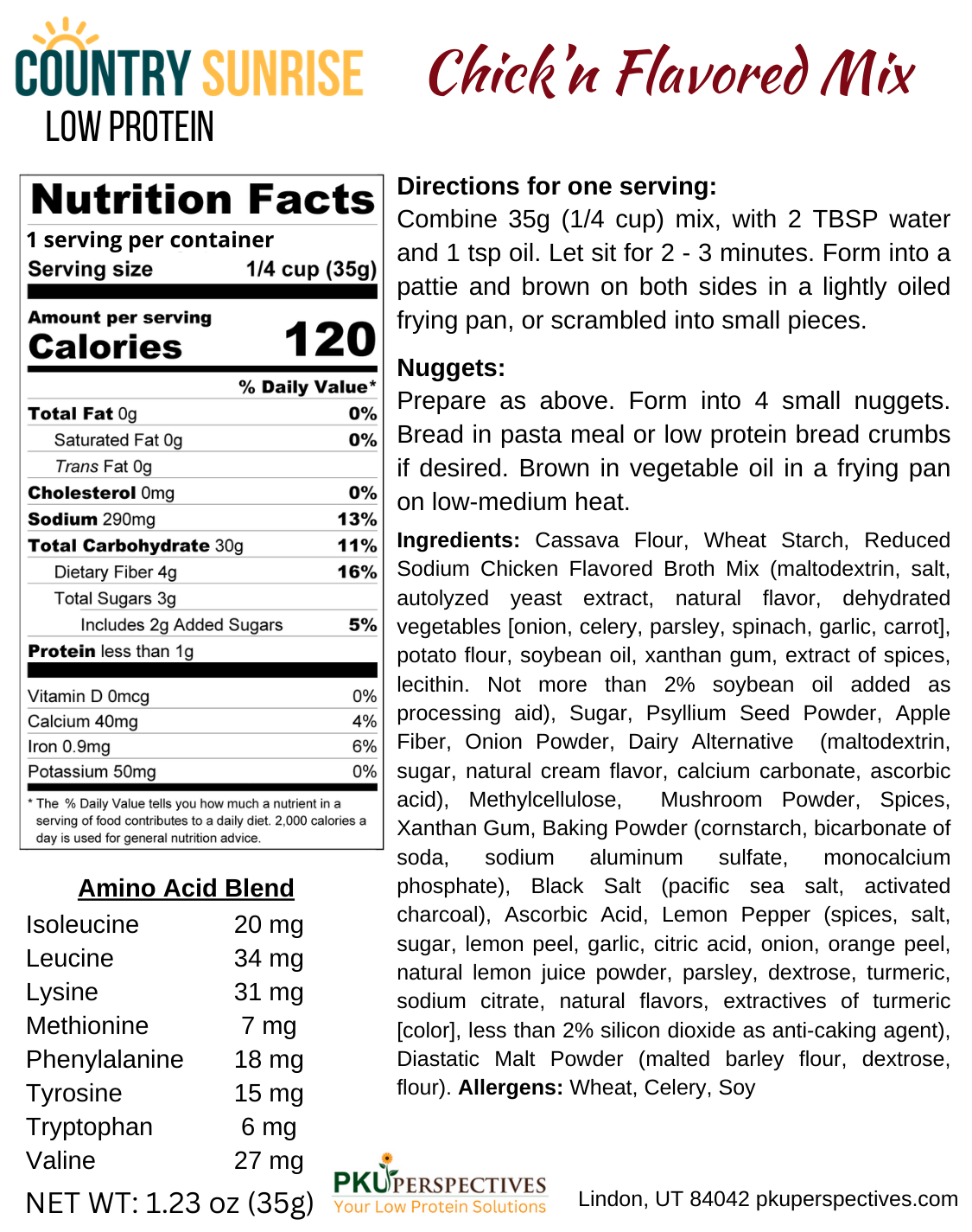 Country Sunrise Chick'n (Flavored) Mix PACKET- 1.23ozCountry Sunrise Chick’n (Flavored) Mix PACKET- 1.23oz