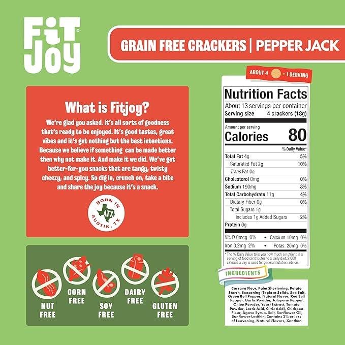 FFitjoy Grain Free Pepper Jack Dairy-Free Cheese Flavor Cracker Rounds- 8 oz