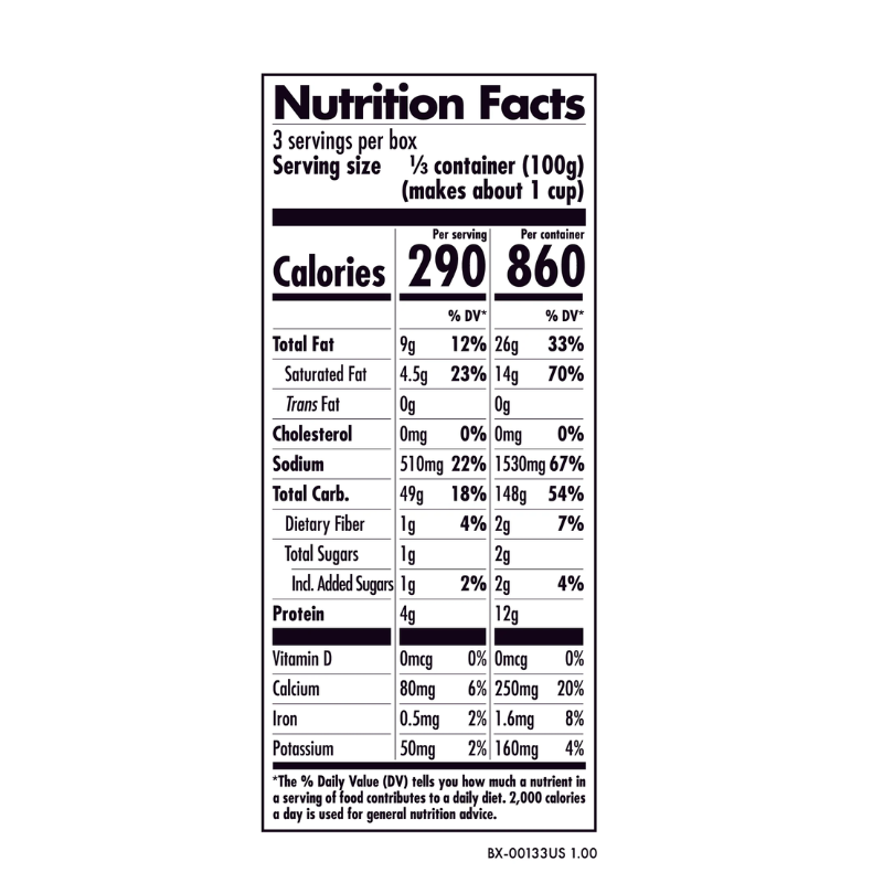 INGREDIENTS: RICE PASTA (WHITE RICE, BROWN RICE), DAIRY-FREE CHEESE SAUCE (WATER, COCONUT OIL, EXPELLER PRESSED SAFFLOWER OIL, MODIFIED POTATO STARCH, SALT, CANE SUGAR, NATURAL FLAVORS, CALCIUM PHOSPHATE, LACTIC ACID, PEA PROTEIN, SODIUM ALGINATE, YEAST EXTRACT, ANNATTO (COLOR)).