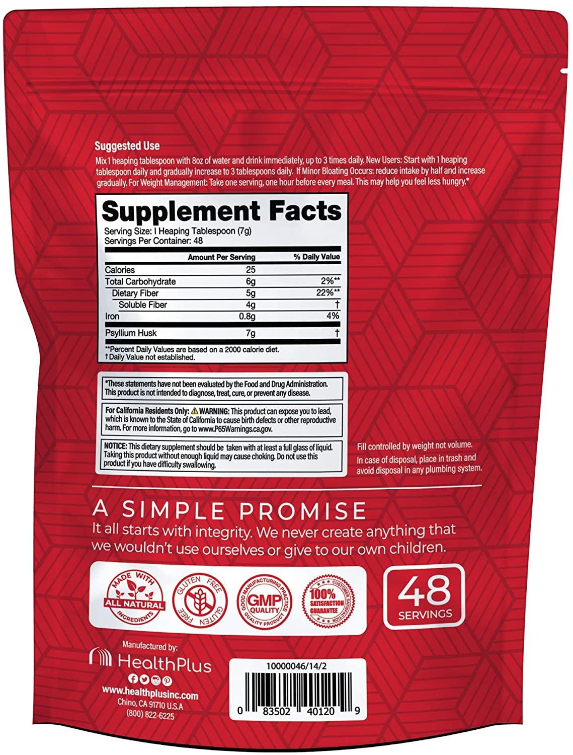100 % Pure Psyllium Husk / 12oz Bag*