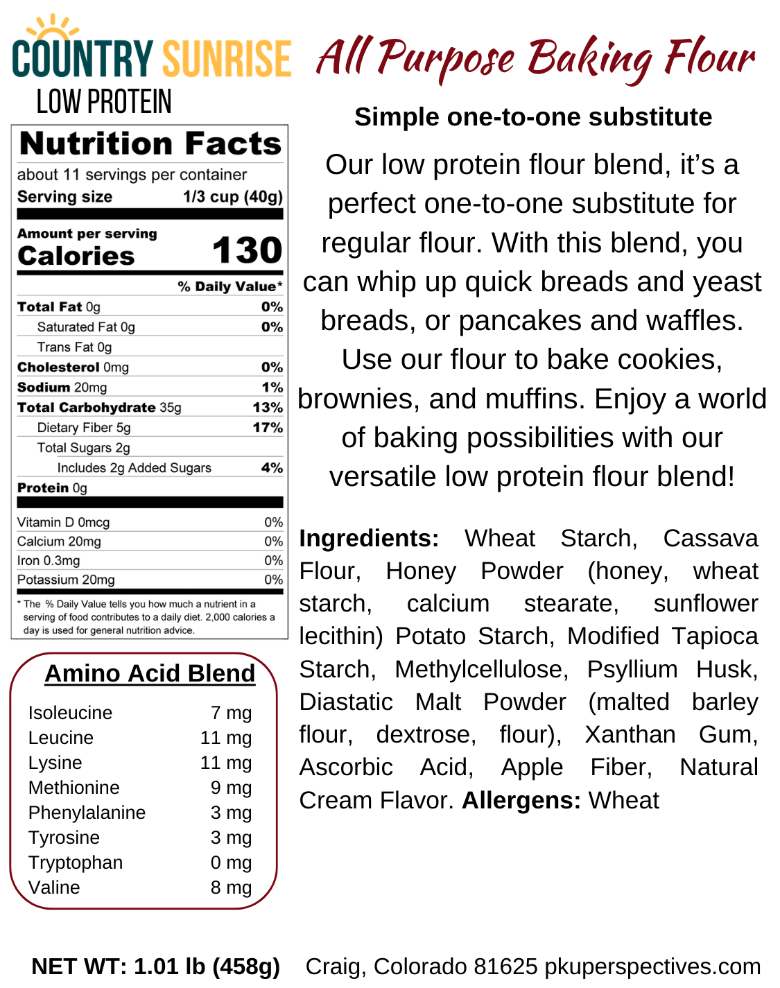 Country Sunrise All Purpose Baking Flour BAG-1.01lbCountry Sunrise All Purpose Baking Flour BAG-1.01lb