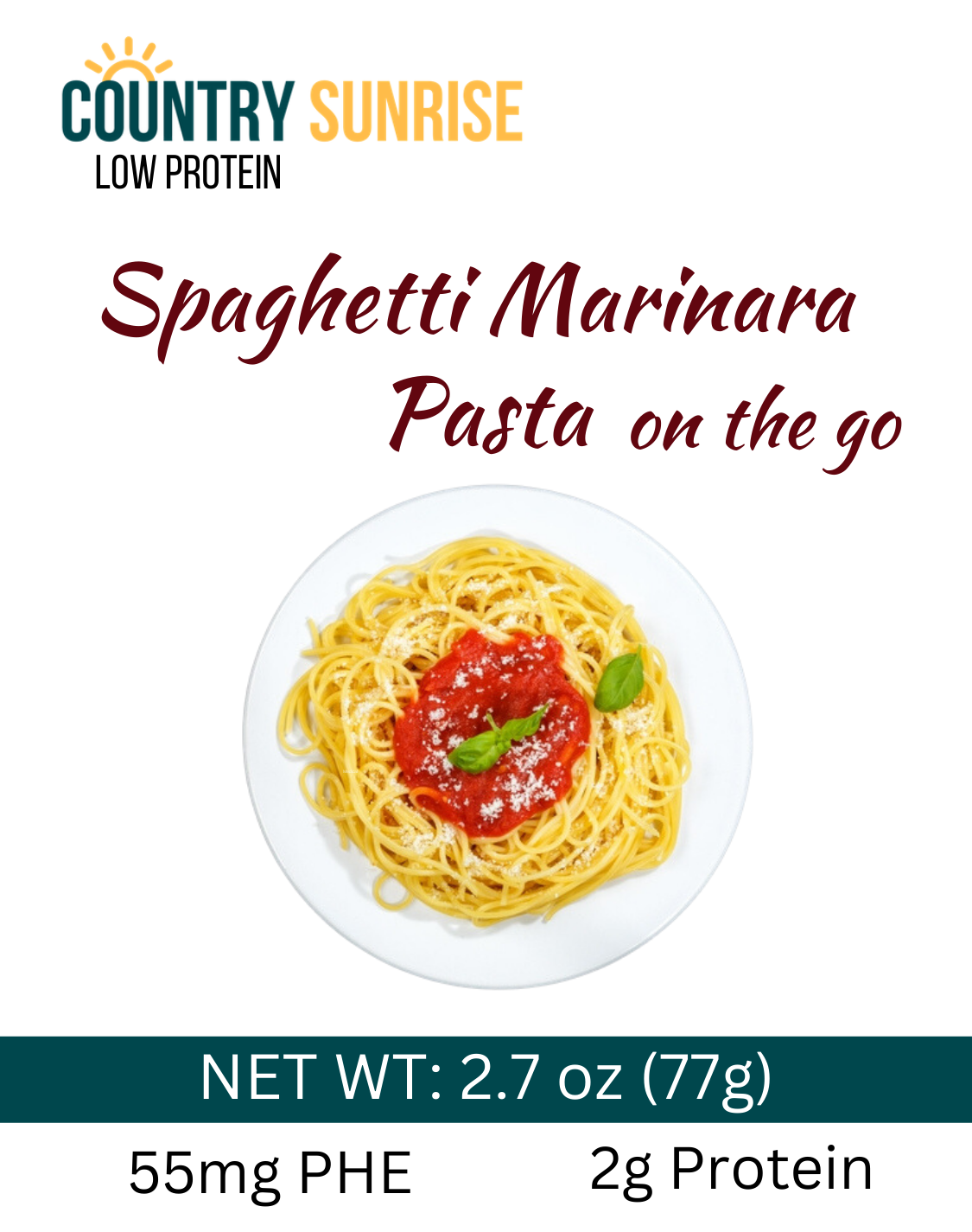 Country Sunrise Spaghetti Marinara Pasta on the go BOWL- 2.7oz