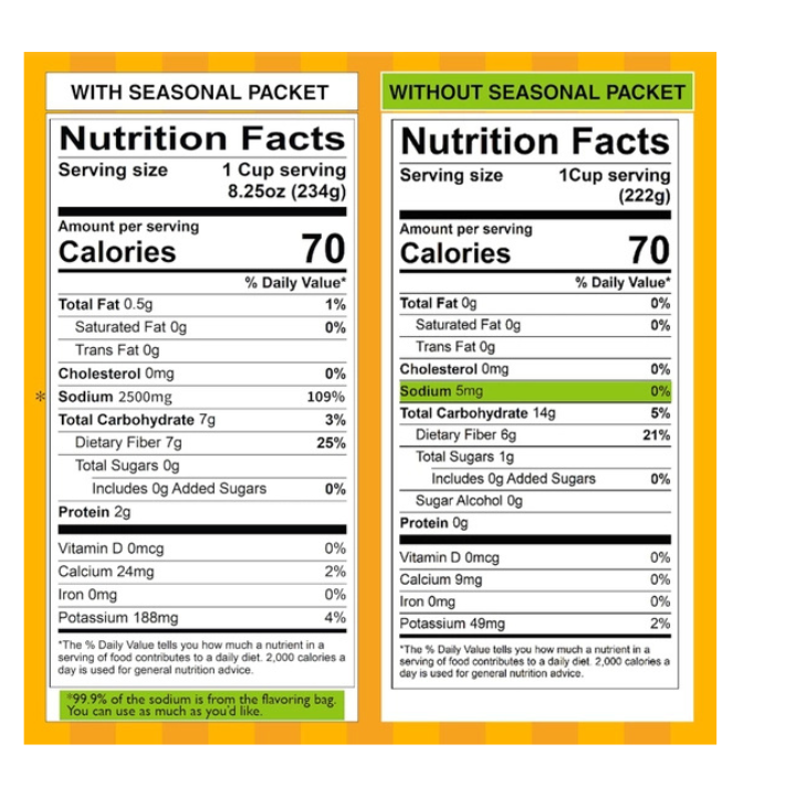 Ingredients:Â Dehydrated Vegetables (Onion, Carrot, Parsley, Scallion), Konjac Noodles (Water, Oat Flour (gluten), Konjac Flour, Calcium Hydroxide (Stabilizer)), Soup Base (Salt, Cornstarch, Spices, Disodium 5-Ribonucleotides (Flavor Enhancer)), Turmeric