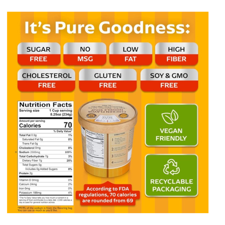 Enjoy a warm, satisfying meal with Skinny Pasta Instant Soup—just 69 calories per serving! Made with konjac noodles covered in oat fiber, this delicious weight loss soup is perfect for anyone following a keto or low-carb lifestyle. Wholesome Ingredients, No Compromises Crafted from konjac root and free of gluten, MSG, soy, dairy, and GMOs, this shirataki noodle soup is paleo-, vegan-, and kosher-friendly. It’s pure skinny noodles in every spoonful! Convenient & Ready Fast Just add boiling water and your healthy cup of soup is ready in one minute. Great for work, travel, or a quick low carb ramen noodles fix at home.