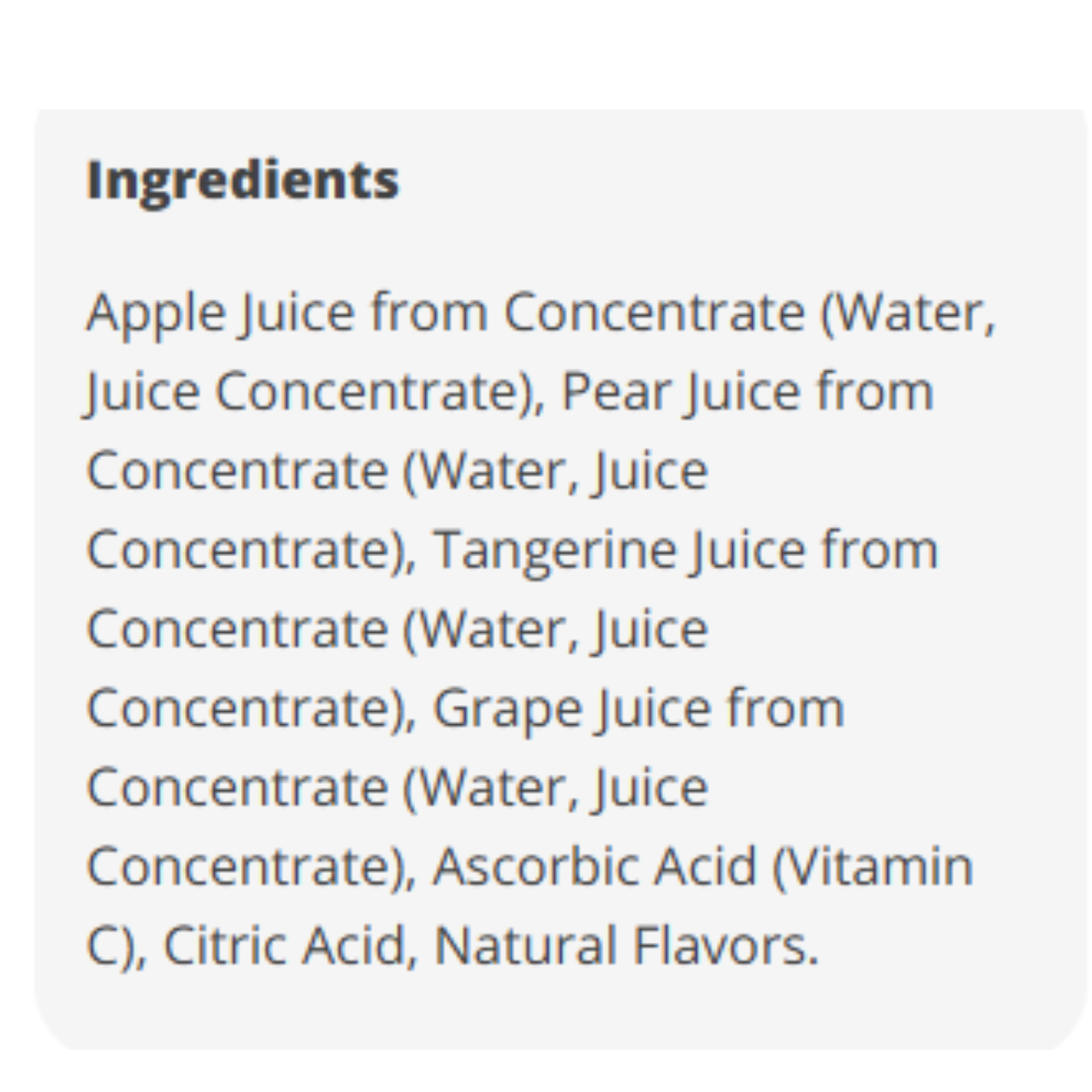 - Flavored Juice Blend from Concentrate with Other Natural Flavors & Added Ingredients