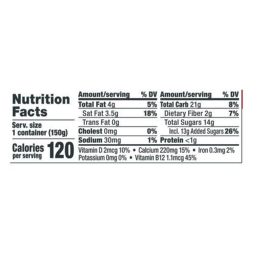 So Delicious Strawberry Yogurt is a thick and creamy coconut milk yogurt exploding with sweet fruit flavors. You’ll be amazed from the very first spoonful at this amazingly creamy yogurt experience without the dairy or soy! Dairy Free / Lactose Free, Soy Free, Gluten Free, Rich in Medium Chain Fatty Acids, Excellent Source of Vitamin B12 (vegetarian friendly), Formulated for Maximum Calcium Absorption,Contains Pre- and Probiotics for Enhanced Intestinal Health, Cholesterol Free, No Trans Fats, and Certified Vegan.