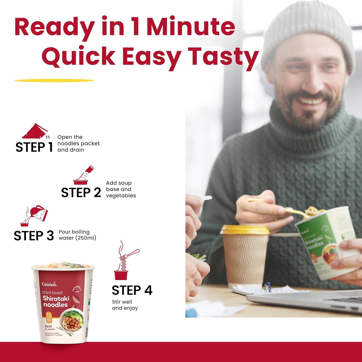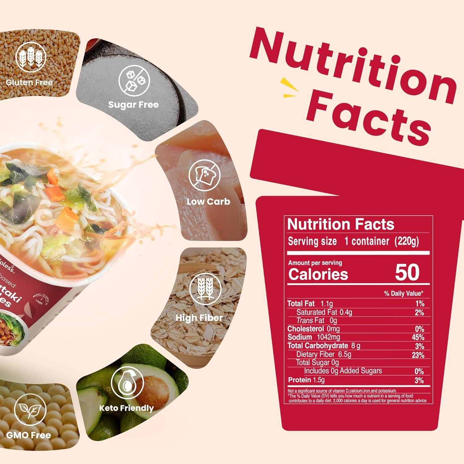 Low Calorie Konjac Pasta Noodles, Low Carbs Beef Flavored Noodles Soup, Healthy Noodle Keto & Paleo Friendly, Gluten Free, Vegan