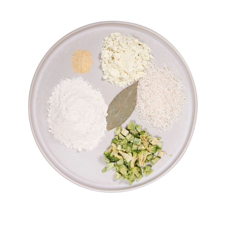 Ingredients: Unbleached wheat flour, rice, unbleached wheat flour, broth (maltodextrin, sea salt, autolyzed yeast extract, natural flavor, onion, celery, parsley, spinach, garlic, carrot, potato flour, soybean oil, spices, extractive of spices, lecithin), broccoli, bay leaf.