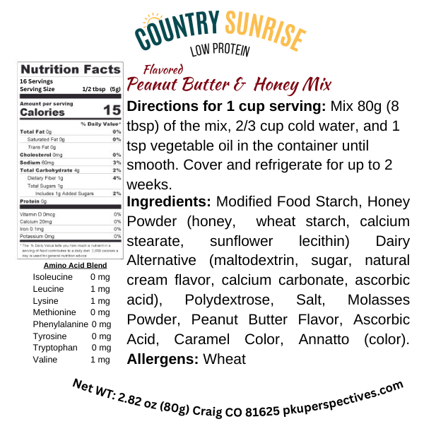 Country Sunrise Low Protein Flavored Peanut Butter & Honey Mix – 2.82 oz (80g)